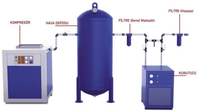 Kompresörlerde sıkıştırılan havanın ısınması ve soğuması ile yoğunlaşan ve bu sırada açığa çıkan nemin kurutulması